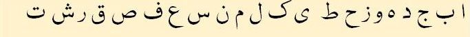 عباسی دور خلافت تک عربی زبان کے بنیادی حروف تہجی اور ان کی ترتیب یہی رہی جو اوپر درج ہیں ۔ عباسی دور کے ایک مشہور خطاط ابن مقلہ نے عربی حروف تہجی کی ترتیب اسطرح تبدیل کردی جو ہم اج کل استعمال کررہے ہیں۔ یہ ہے وہ ترتیب جو عربی،فاسی، اردو، اور ہر اس زبان کیلئے استعمال ہوتاہے جو عربی سکرپٹ میں لکھی جاتی ہے۔