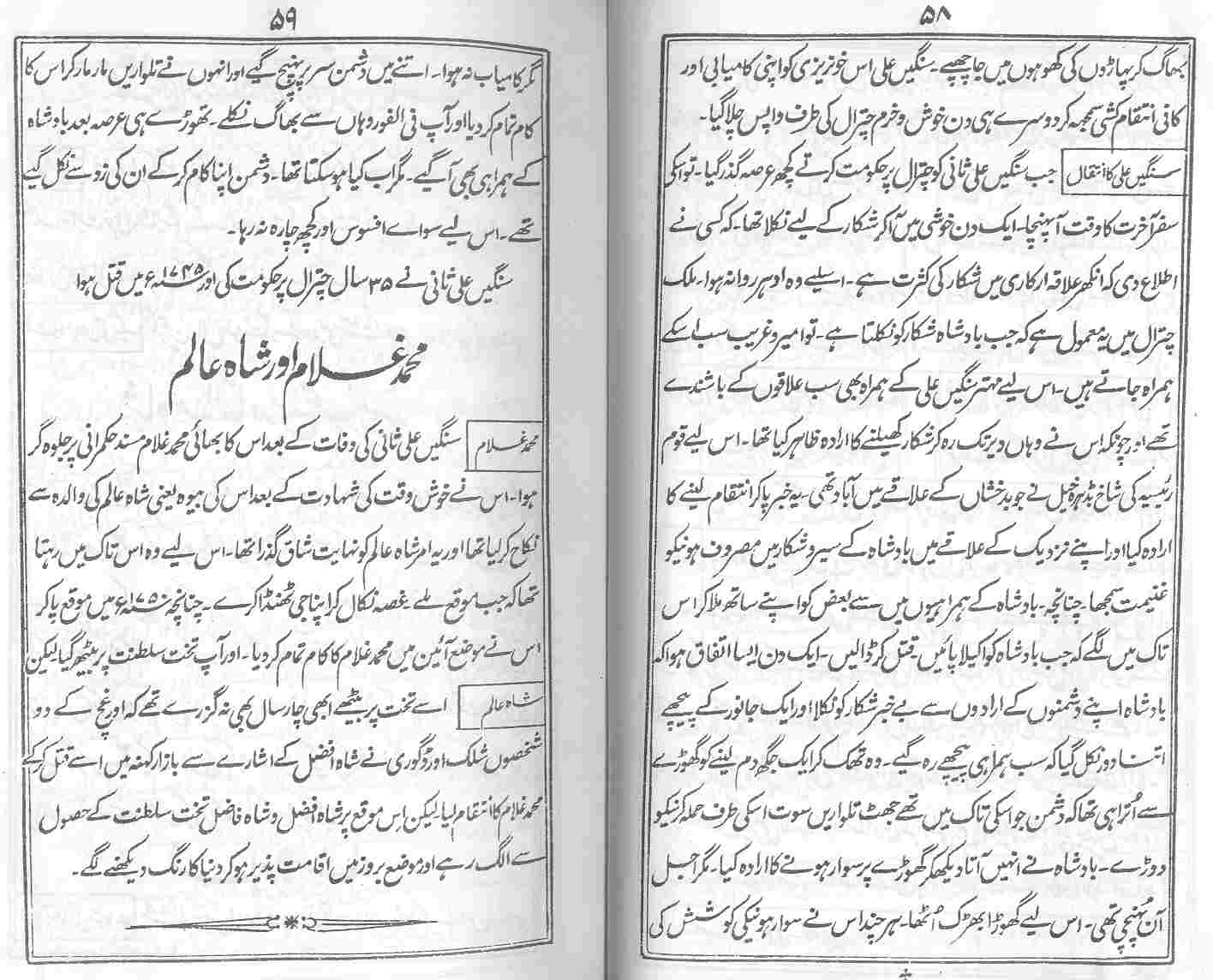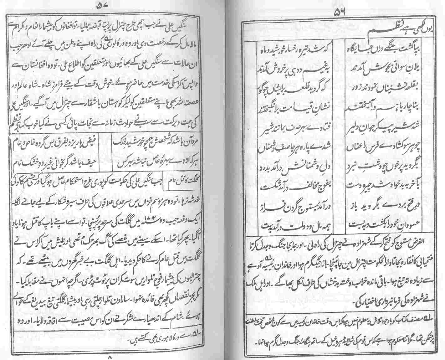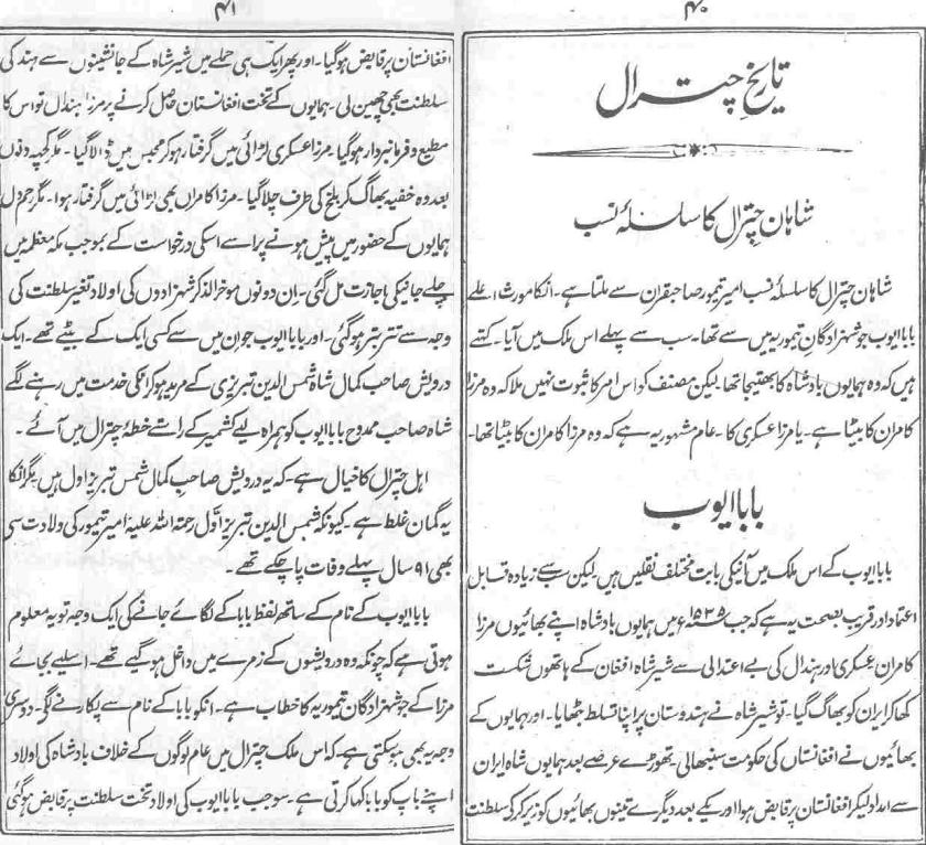 ریاست چترال کی تاریخ پر یہ پہلی مطبوعہ کتاب ہے۔ مصنف انگریزی ملازمت کے سلسلے میں کئی سال چترال میں رہے۔ انہِیوں نے کتاب کے لیے بنیادی مواد ایک مقامی مورخ مرزا محمد غفران سے حاصل کیا۔ مرزا غفران نے ۱۸۹۳ میں اس ملک کی تاریخ پر ایک مختصر کتاب فارسی میں لکھی تھی۔ یہ کتاب انگریزوں حاصل کی اور منشی عزیز الدین سے اس کا اردو ترجمہ کرایا۔ تاہم مترجم نے نہ صرف بعد کے حالات کا تذکرہ خود لکھا بلکہ اپنے مشاہدات اور تأثرات بھی اس میں شامل کیے۔
